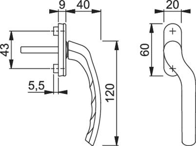 HOPPE 0710LVK/U71Z mini Tokyo vinduesgreb, F9 ståleloxeret alu., HØ, 8/40, 0,5mm styretappe - SLETTES VED LEJLIGHED